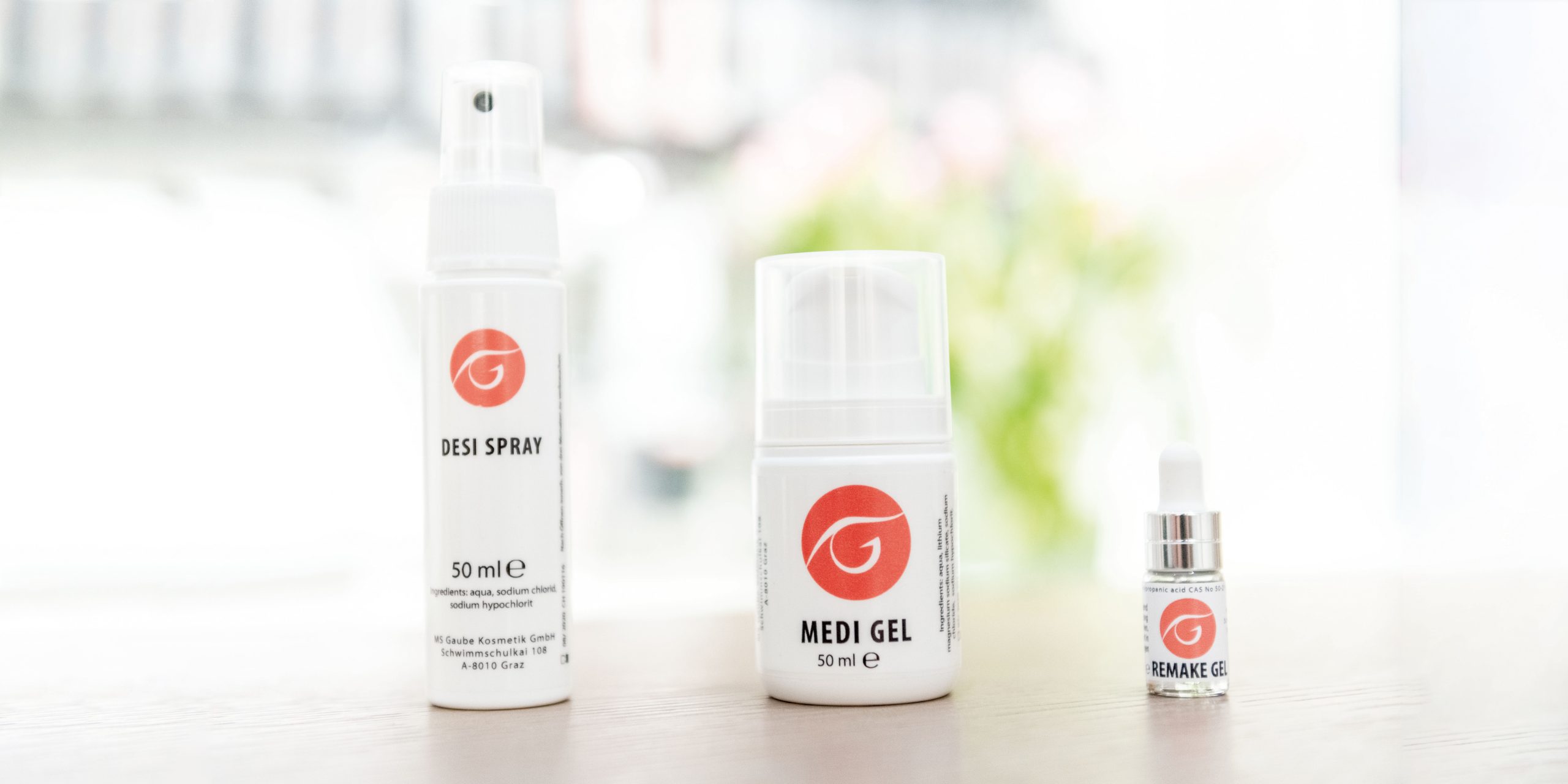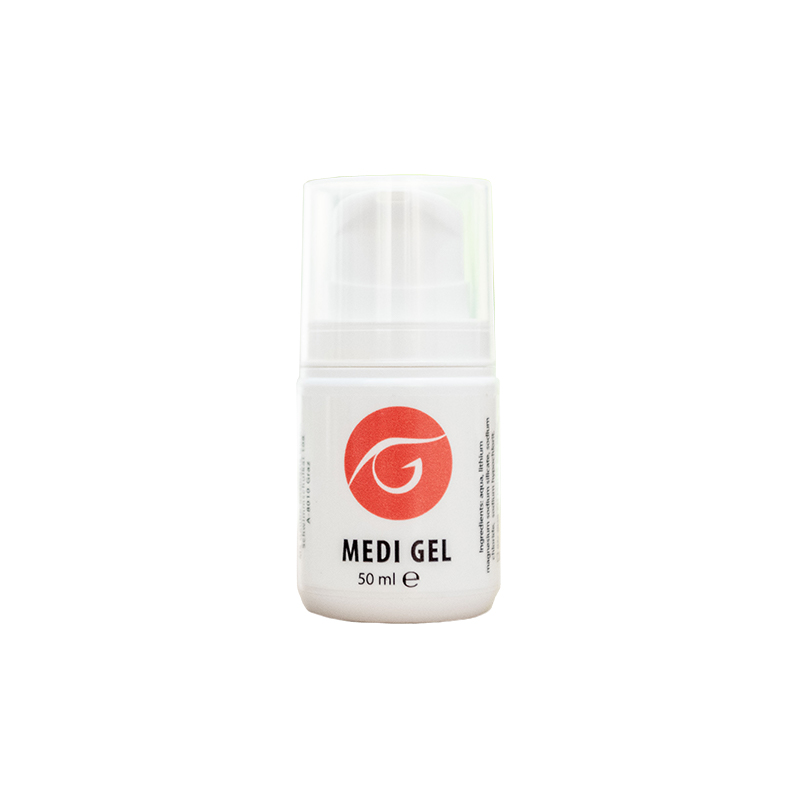After the pigment lightening (tattoo or PMU), the Gaube® Medi Gel is applied to the treated area of the skin to calm the skin. The gel should be applied very thick and not be massaged. Leave the product for at least 40 seconds. Medi Gel does not need to be wiped. It also shows special support for herpes, athlete's foot, allergies rashes or eczem